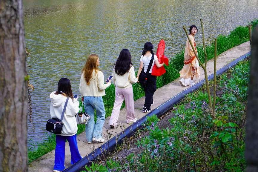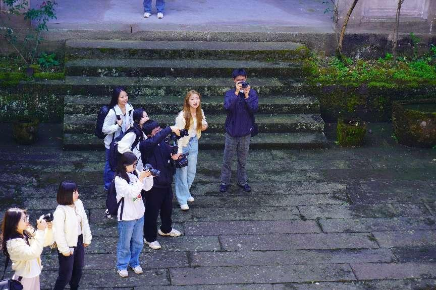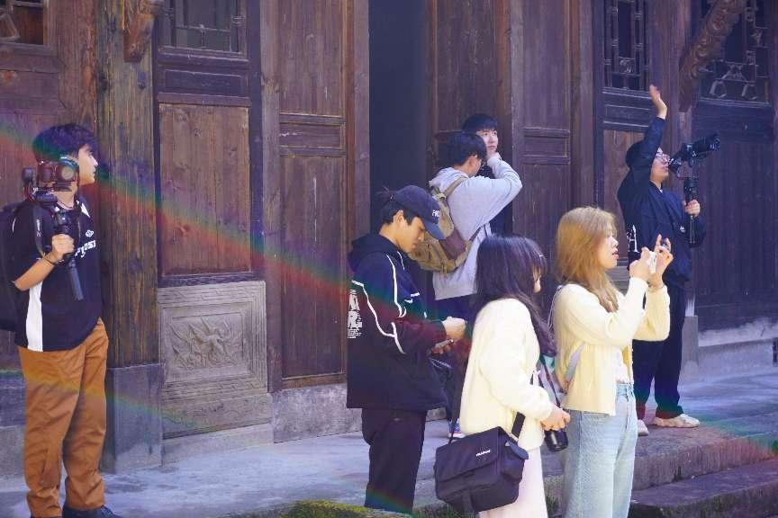 走过位于茶马古道上的阳河村街道,跨过已有百年历史的跳蹬桥。跳蹬桥共有42蹬,屹立百年,扛起两岸群众通行重任。同学们跨过一个一个桥蹬时,彷佛跨过了阳河村的一段段历史。沿河看柳,荷塘月色,辘轳吊水,耕读传家,阳河印象,乡愁文化;桥上的同学们也在用相机记录下关于自己的“阳河印象”。