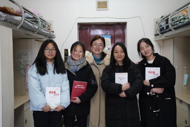 代远红书记为寝室学生送来了牛奶和水果并提醒她们要保证营养,注重身体健康。代书记还为学生带去《中国共产党简史》等四册党史书籍,了解学生平时党史学习情况,并勉励学生要主动进行党史学习,提升思想修养和作为传媒学子的政治敏锐性。寝室学生向代书记展示了成员们获得的奖状荣誉,代书记表扬了他们一直以来的努力和成绩,希望她们继续保持。