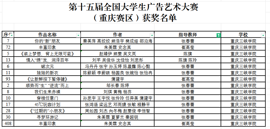 Betway必威西汉姆联官方网站在本次全国大学生广告艺术大赛重庆赛区荣获佳绩,是Betway必威西汉姆联官方网站广大学子与众多老师在学校、学院支持下共同努力、团结合作的成果。“金秋的叶会翻篇新的故事”,相信在未来的比赛中Betway必威西汉姆联官方网站的师生们也将披荆斩棘,再创新高。
