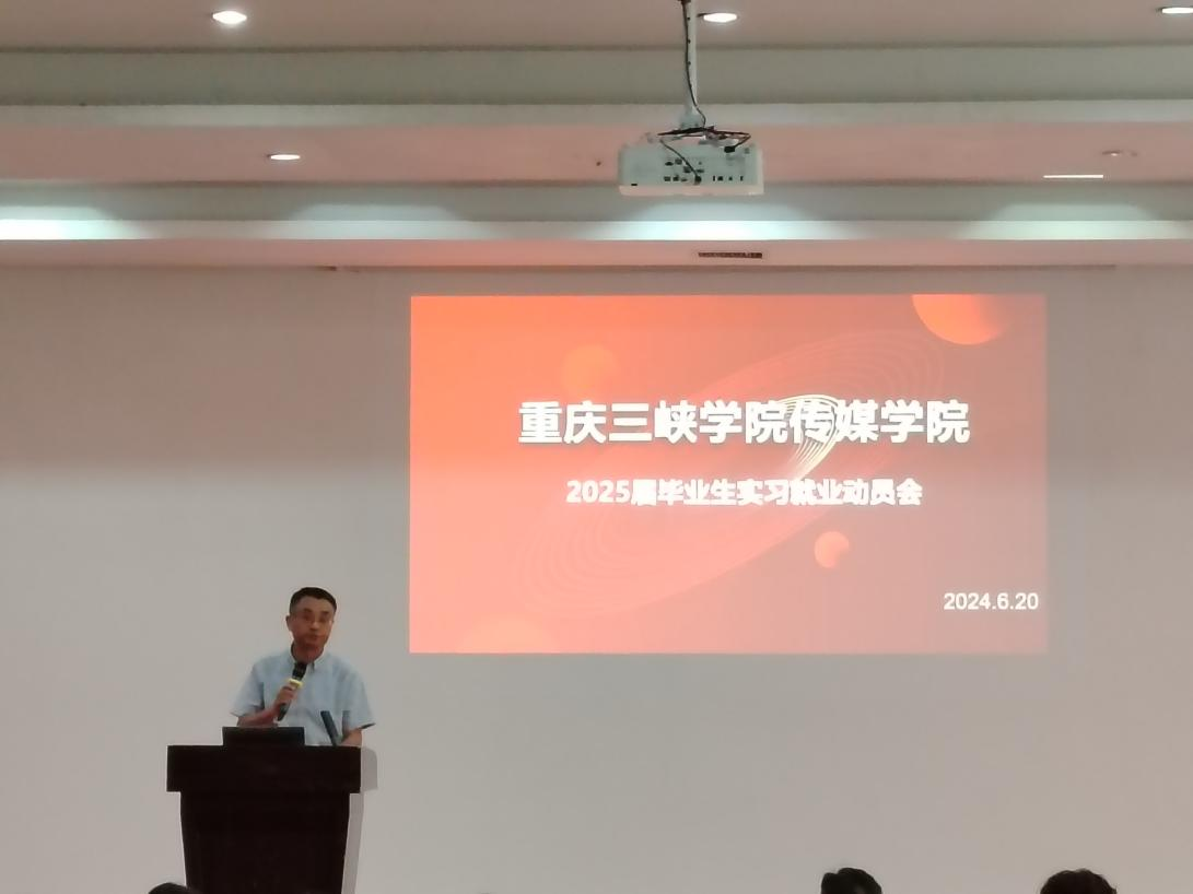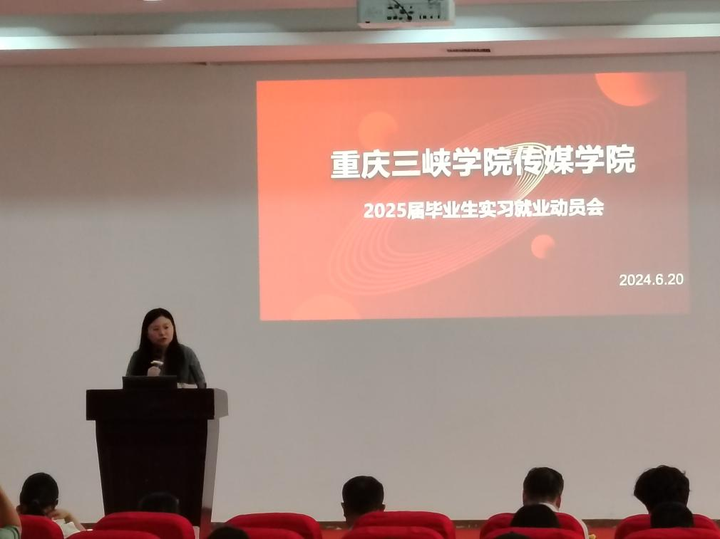 为全面落实学校第五次本科生就业推进会工作精神,提前部署与谋划2025届毕业生“实习+就业”一体化工作,扎实开展实习实训,增强学生就业竞争能力,6月20日,Betway必威西汉姆联官方网站在明辨楼2栋104会议室召开2025届毕业生实习就业动员大会。Betway必威西汉姆联官方网站院长韩红宇、党总支书记孙国英、副院长陈振华以及各系主任、学工办主任、实习指导教师、辅导员和2025届全体毕业生参加会议,并邀请了重庆迅鲸文化传播有限公司总经理王成刚为学生做就业培训。此次会议由陈振华主持,共分为三个阶段。