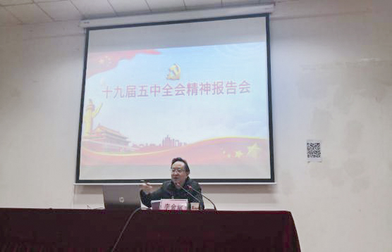 会议上,李金斌书记从全会的重大意义、目标任务、构建新发展格局的战略构思和重要着力点、党的全面领导、动员各方面力量为实现“十四五”规划和2035年远景目标而团结奋斗五个方面对党的十九届五中全会精神进行了系统宣讲和深入解读。李金斌书记强调要深刻把握全会的主要精神,遵循教育发展规律,为更好的建设学院和学校出谋划策。