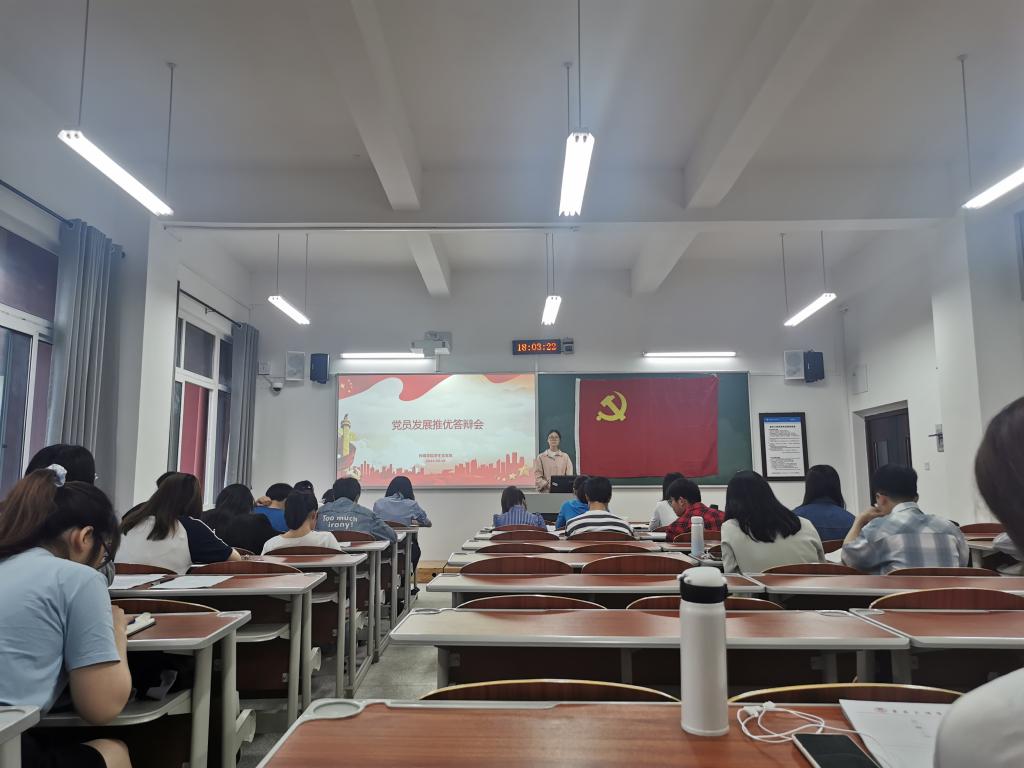 会上,28名发展对象进行汇报,阐述入党动机。答辩小组成员就发展对象的理想信念、党的基础理论知识和在校期间的表现等情况对答辩同学进行提问并现场评议。现场党员、答辩小组成员发表意见,随后无记名投票确认唐丽娜等25名同学通过本次答辩。
