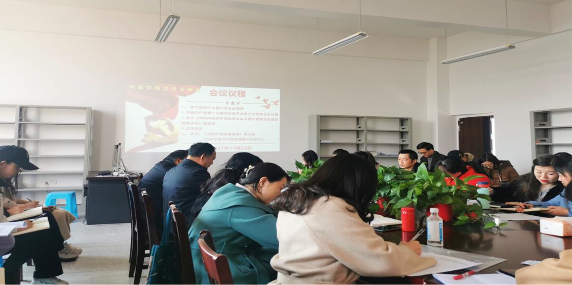 11月25日下午,Betway必威西汉姆联官方网站在博学楼5C—311召开党总支例会,专题学习党的十九届六中全会精神。Betway必威西汉姆联官方网站党总支书记刘亚兰主持会议,全体党员师生及教职员工参加本次学习大会。