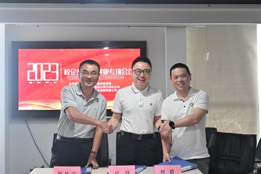 6月19日,重庆三峡学院传媒学院院长韩红宇、党总支书记孙国英、副院长陈振华及网络与新媒体系主任史宗历、广告系系主任张春蕾、广播电视系主任陈玲等一行联合中国联通万州分公司校企负责人何毅到重庆头角文化传媒有限公司开展访企拓岗就业专项行动。
