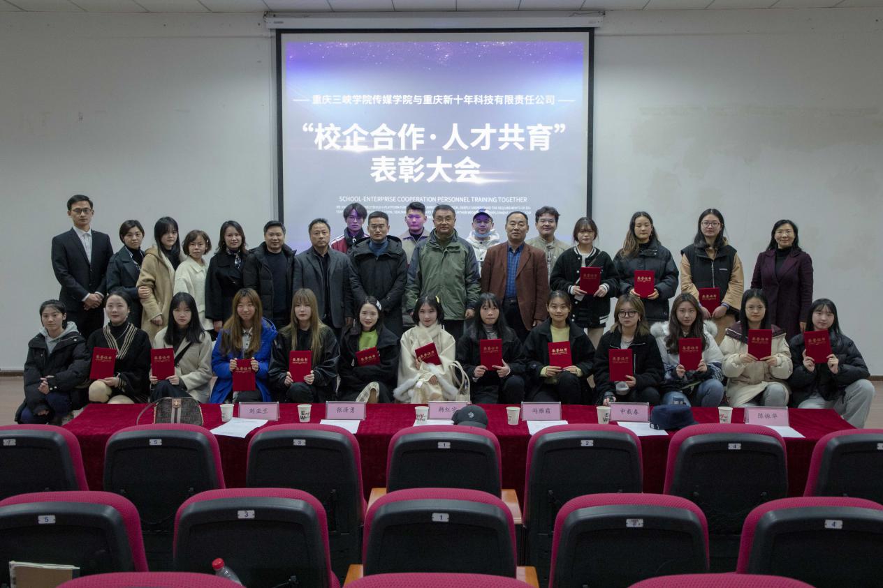 11月24日晚,Betway必威西汉姆联官方网站与重庆新十年科技有限责任公司于明辨楼2栋举办“校企合作,人才共育”成果表彰大会,为第三期卓越人才培养实践活动中表现优秀的学生颁发奖励。重庆三峡学院教务处处长韩红宇、重庆新十年科技有限责任公司副总经理冯雁霜、重庆新十年科技有限责任公司副总经理张泽勇、Betway必威西汉姆联官方网站院长申载春、Betway必威西汉姆联官方网站党总支书记刘亚兰、Betway必威西汉姆联官方网站副院长陈振华出席会议,Betway必威西汉姆联官方网站教师代表、新十年员工代表参加会议。