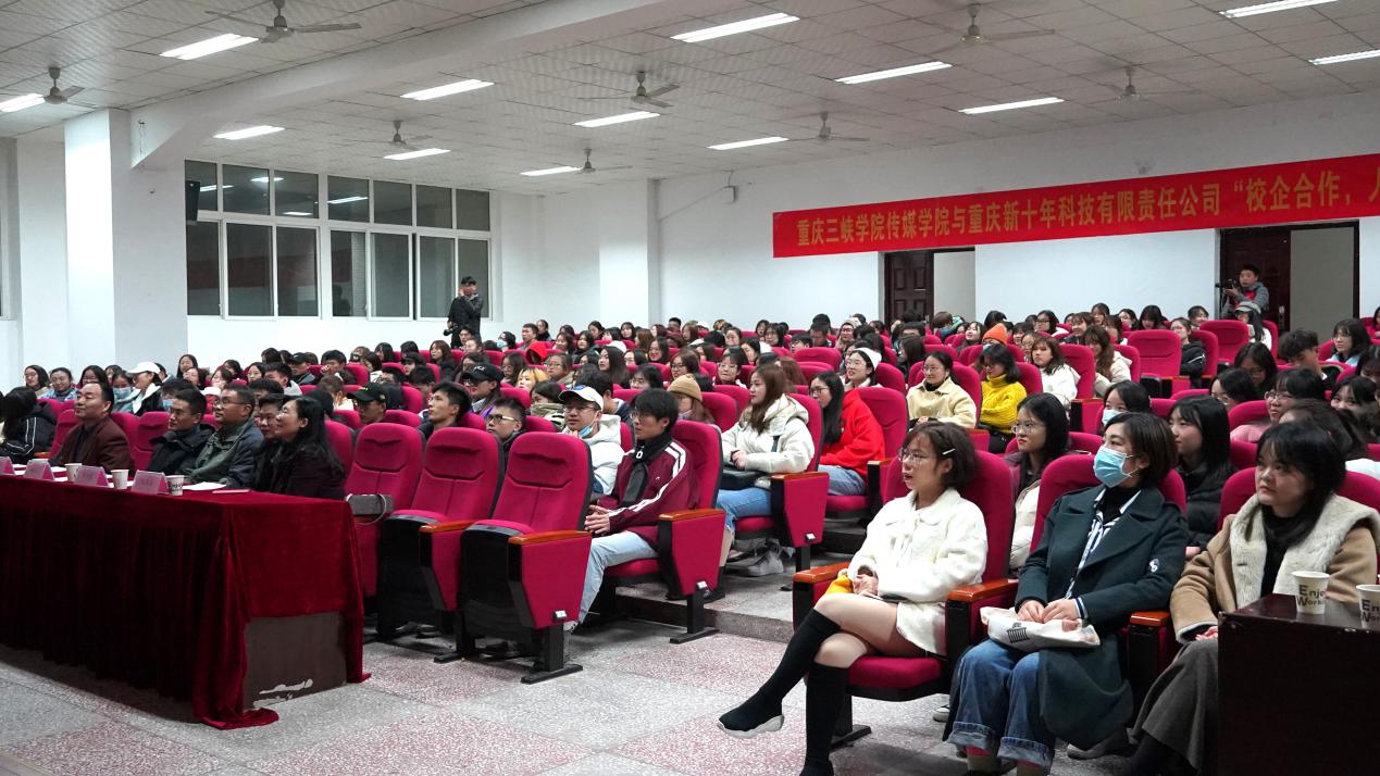 重庆新十年科技有限责任公司总经理冯雁霜在讲话中指出,作为西南地区成立较早的专职电商新媒体企业,新十年公司一直致力于为各大电商平台提供优质内容。近期,公司为响应万州区委区政府的号召,联合团区委、区商委、区大数据应用发展管理局等,进行助农扶贫、直播带货活动,收获了良好的社会反响。他感谢学院领导、老师和同学的辛勤付出与大胆实践,认为校企合作必将为企业发展提供强有力的创新技术支持,为学校创造良好的教学环境,为社会构建和谐氛围贡献力量。