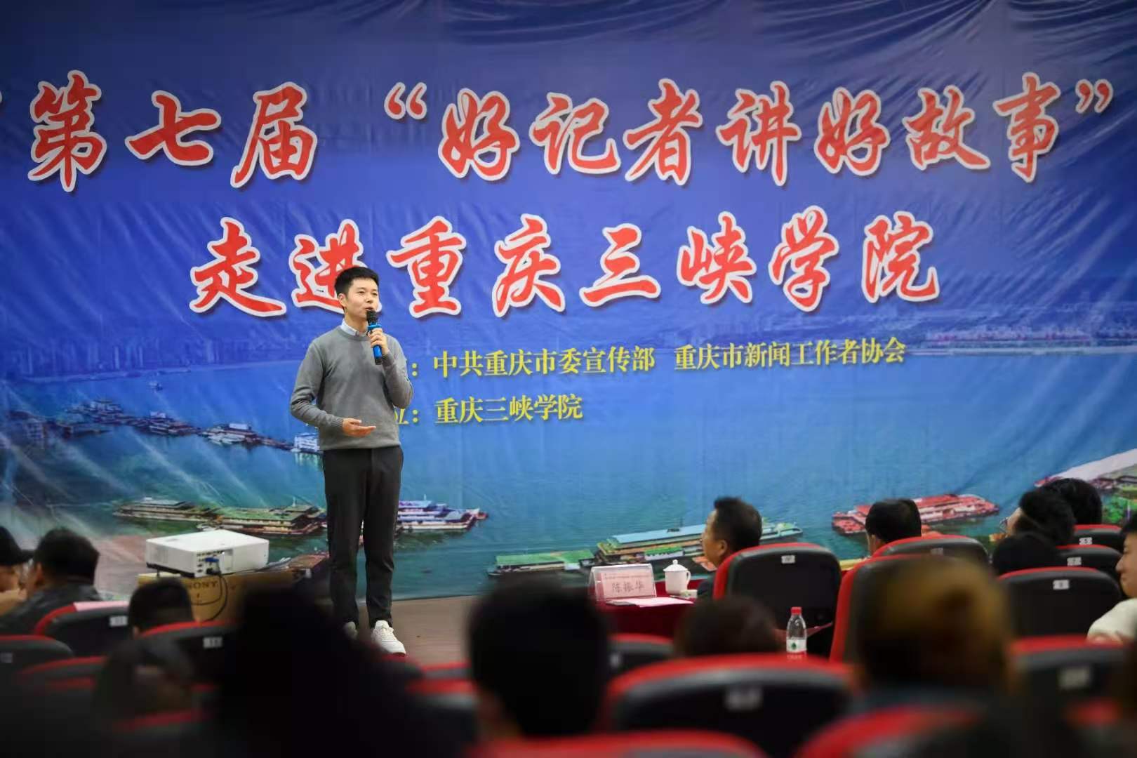 11月19日,由中共重庆市委宣传部、重庆市新闻工作协会主办的重庆市第七届“好记者讲好故事”巡讲走进三峡学院,8名新闻工作者向三峡学院Betway必威西汉姆联官方网站的师生与观众分享了在新闻一线工作过程中的故事与感动。