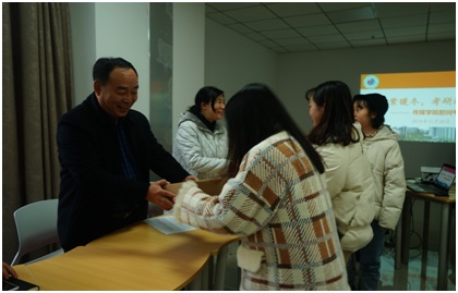 接下来,申载春、刘亚兰、陈振华将精心准备的温暖大礼包送给了在座的考研学子,并表达了对他们的鼓励与支持。让大家真切感受到了学院的关怀。
