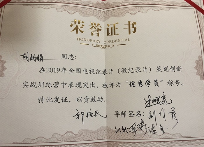作品评分环节,中国传媒大学电视学院教授郭艳民作为评委嘉宾,对学员作品进行了集中点评,并与学员一起现场打分评选出6名实战训练的优秀学员并颁奖,我院教师陈玲、胡丽娟均喜获殊荣。