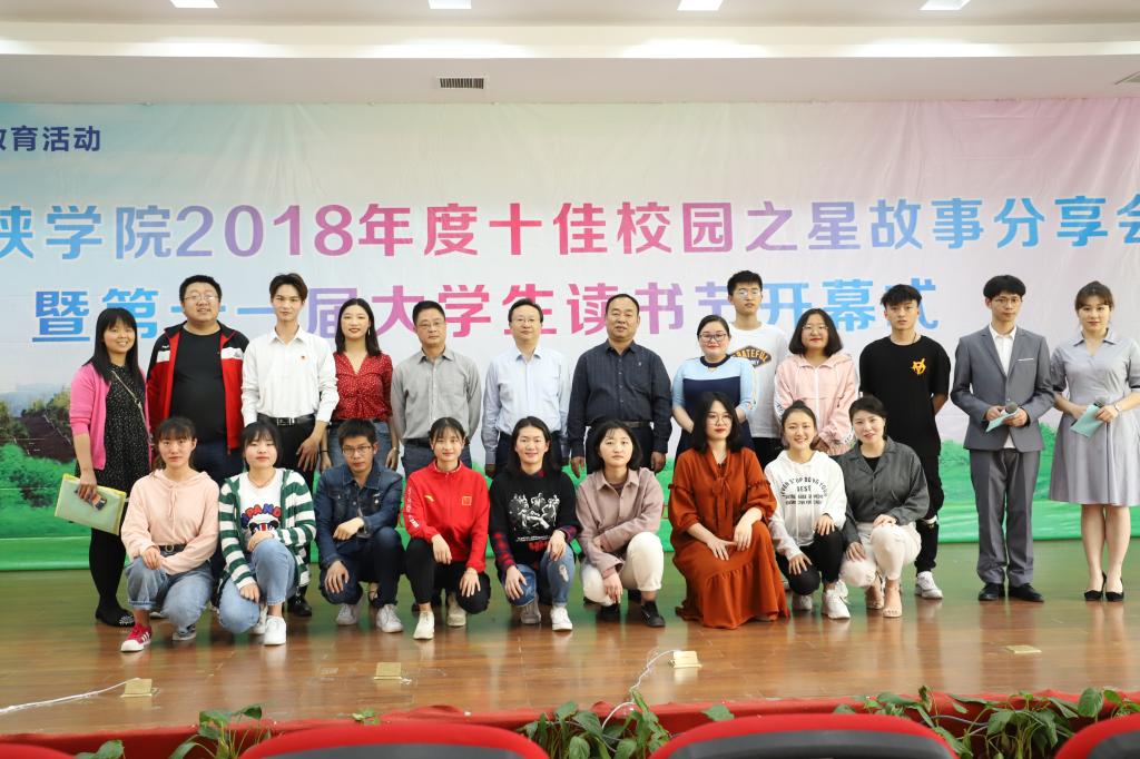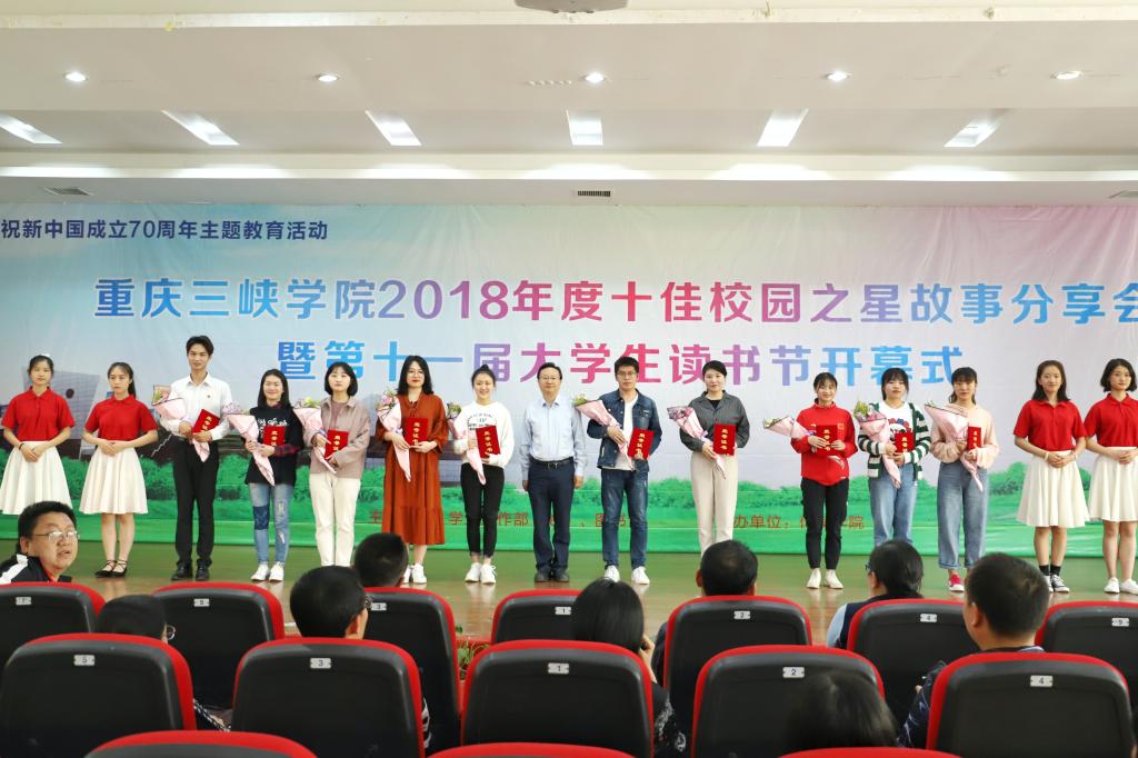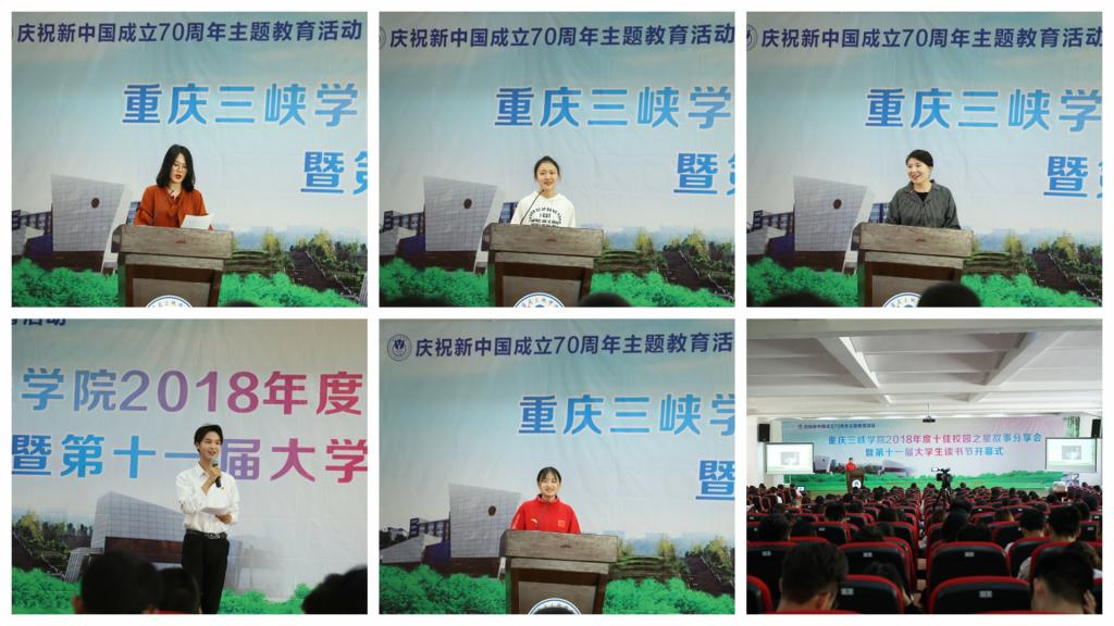 4月18日下午2点30分,由重庆三峡学院学生工作部(处)和图书馆主办,Betway必威西汉姆联官方网站承办的2018年度十佳校园之星故事分享会暨第十一届大学生读书节开幕式在明辨楼2栋104报告厅举行。重庆三峡学院党委常委、纪委书记李金斌,Betway必威西汉姆联官方网站院长申载春,图书馆副馆长刘亚涛,学生处副处长罗雪出席活动,各二级学院学工负责人、学工办主任、辅导员等人到场观看,各二级学院学生代表参与活动。