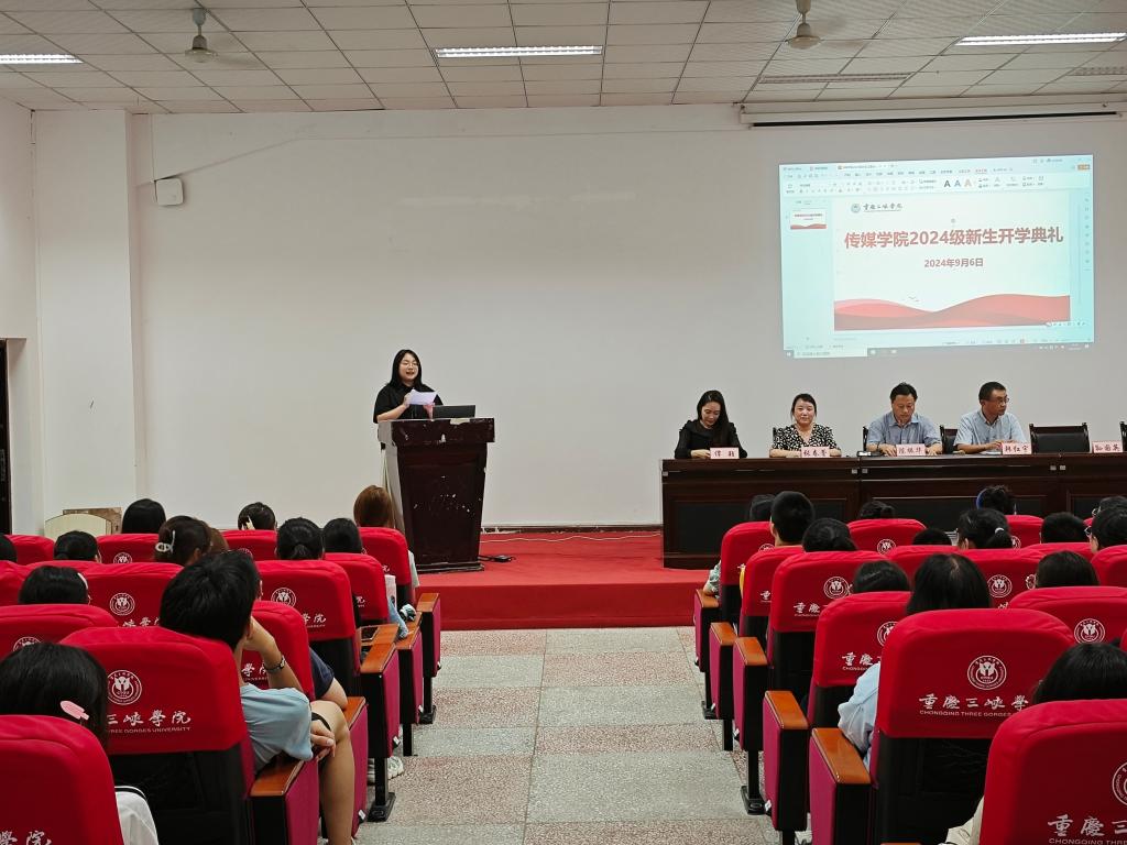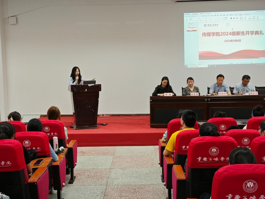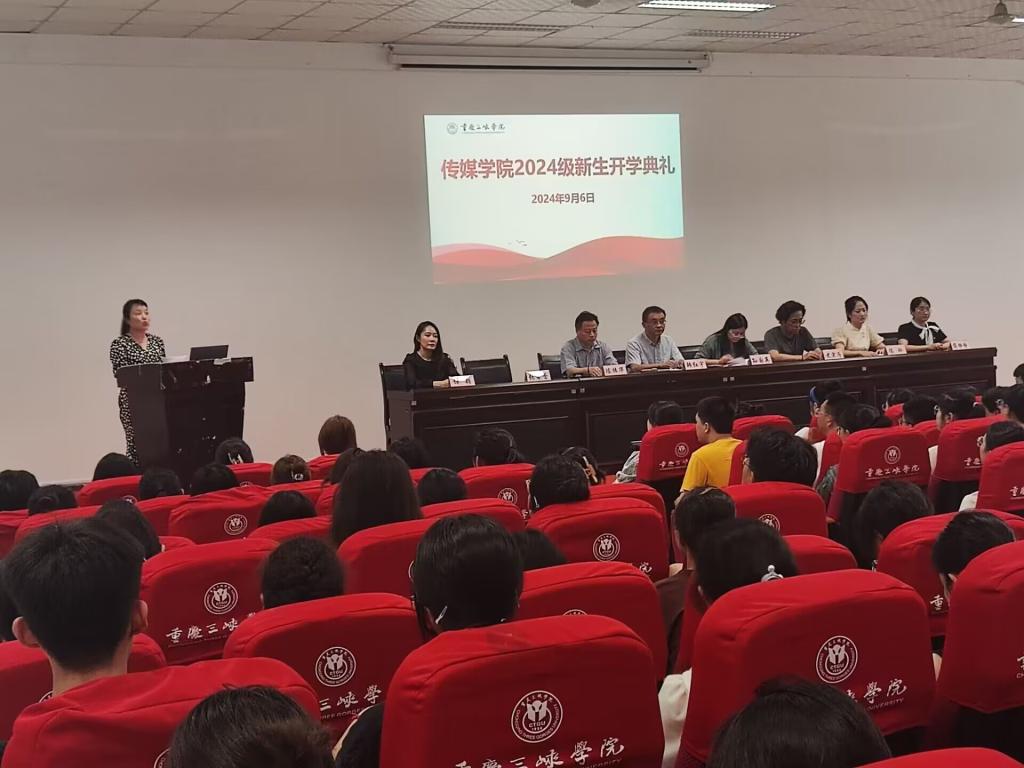 老生代表学生会主席江清然同学结合自身经历向新生们描绘了美好的大学生活,鼓励同学们积极参与学院活动,拓宽知识视野,虚心接受师长与前辈教诲。紧接着,广播电视学新生代表陈莉媛、研究生新生代表高诗砚围绕学习规划表达了对人生新篇章的憧憬和对未来的坚定信心。她们呼吁大家要勇于探索,敢于尝试,珍惜时光,勤奋学习。