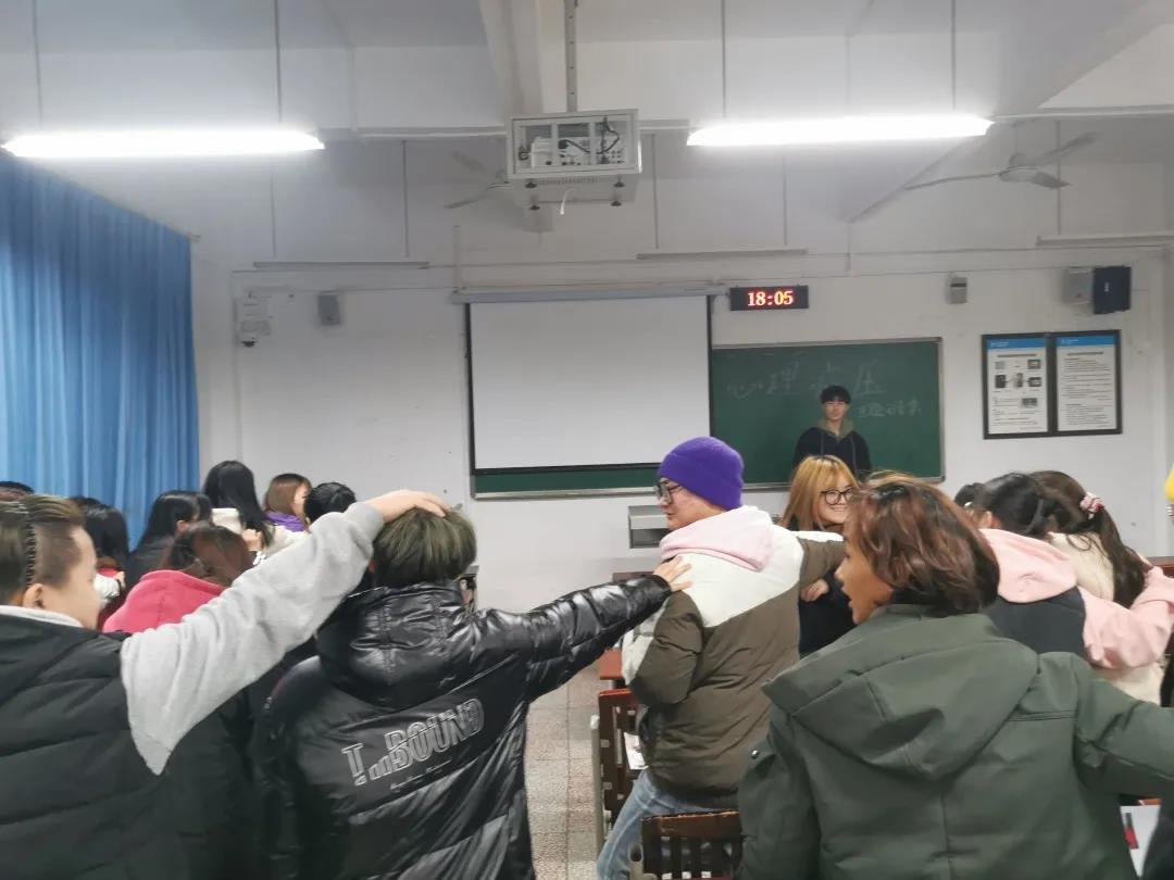 12月17日下午六点,2019级广告班在明辨1教306举办了"释放压力,减压按摩"的班级心理减压活动。