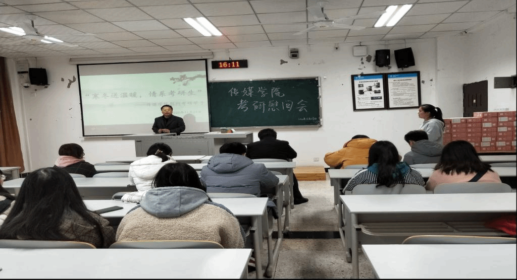 陈振华副院长首先代表学院亲切问候学生们,表达了对考研学子的关心与祝福,为同学们进行了心理的疏导与减压。随后,陈振华副院长讲到,考研是对心理和生理双重考验的过程,考研的道路在未来必定是一笔难以忘记的宝贵财富。他鼓励同学们积极备考、自信应考,且要以平常心对待,最后考研成功。