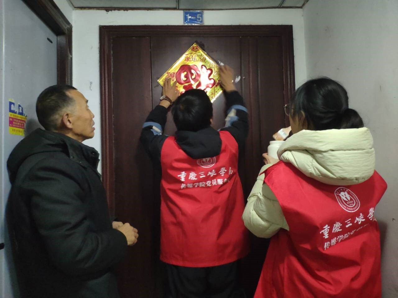 活动中,一部分党员志愿者现场书写春联,赠送给来往的社区居民,提前送上新春祝福。一部分志愿者走进居民家中送“福”,将提前准备好的“福”字贴在门上。此次写春联送“福”志愿活动,为石粱社区增添了节日的欢乐气氛,展现了传统文化的魅力,增添了“年味儿”。此次活动也是我院学生党支部坚持“不忘初心、牢记使命”,践行为人民服务宗旨的生动体现。