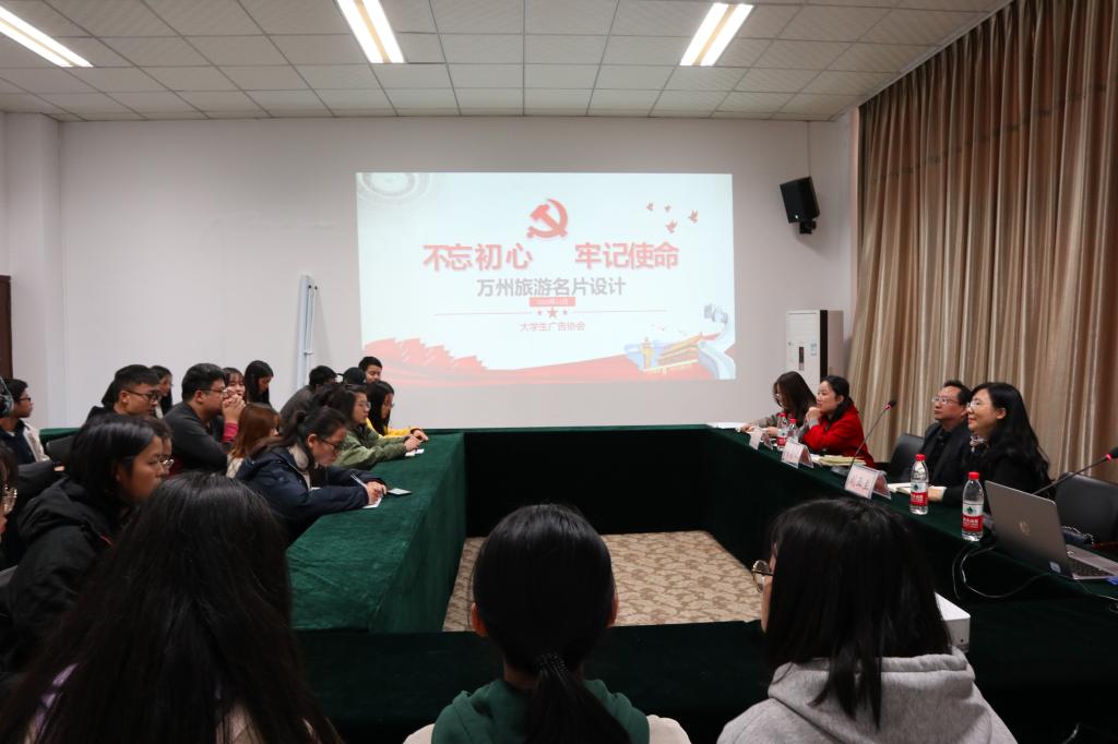 11月18日下午,“不忘初心、牢记使命”——万州旅游设计名片讨论会在明辨楼1栋116举行。学校党委委员、纪委书记李金斌、Betway必威西汉姆联官方网站党总支书记刘亚兰、大学生广告协会指导教师张春蕾出席此次会议,大学生广告协会会长以及协会的干部干事到场参加讨论会。