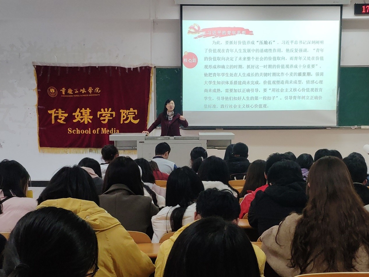 11月21日下午4点半,Betway必威西汉姆联官方网站党总支书记刘亚兰在明辨2栋204教室上了一堂题为“习近平青年思想与大学生的使命担当”的思想政治理论课。Betway必威西汉姆联官方网站全体学生干部和学生代表到场聆听。