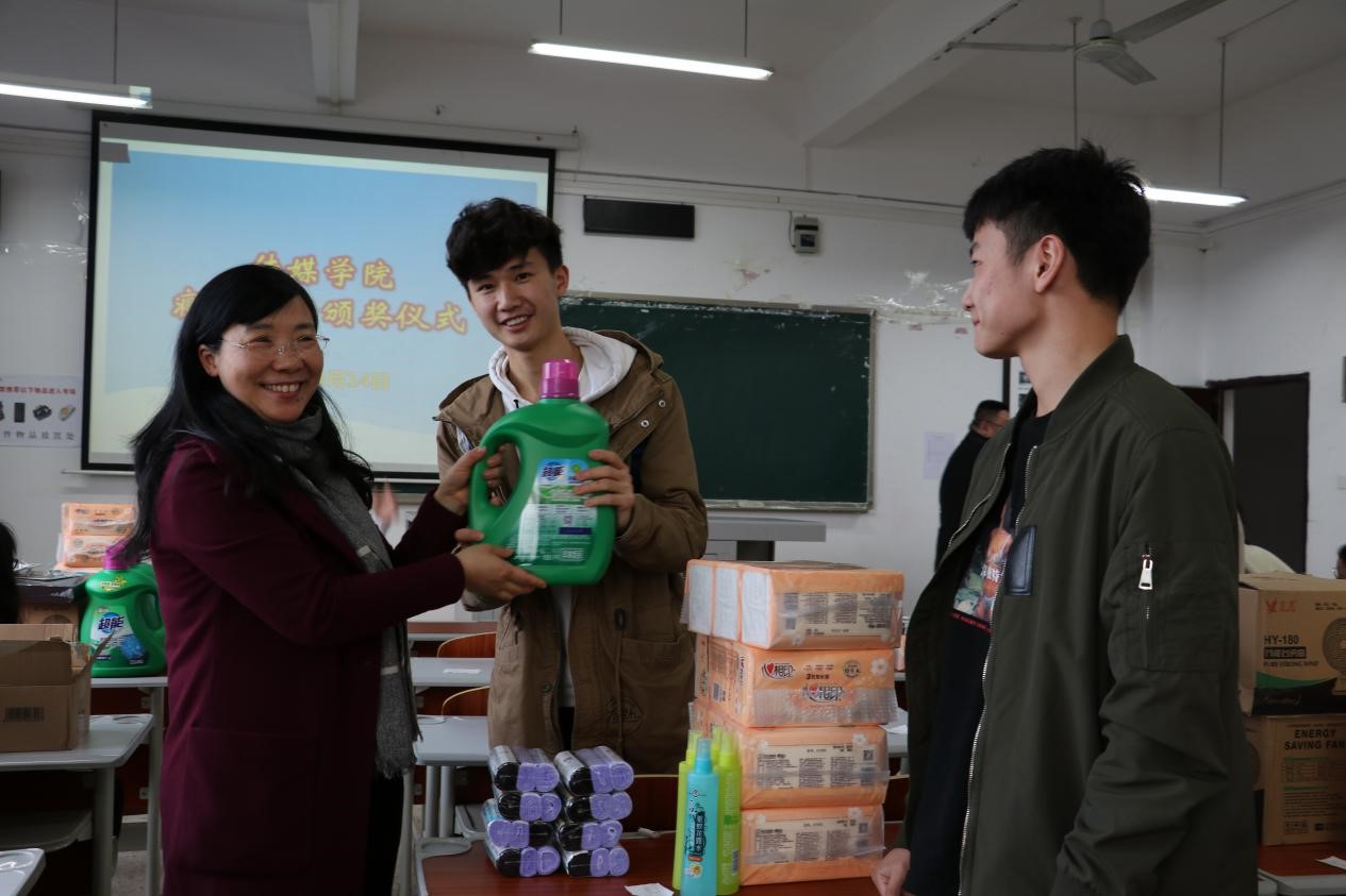 刘亚兰书记为每个受表扬寝室颁发了奖品,上学期我院共有28个寝室在宿管中心检查中表扬,最高表扬寝室桂花苑3舍519寝室共获得表扬了11次。刘书记与同学们进行了交谈,并指出寝室作为大学生活的最小单位,大学生活中有1/3的时间在寝室度过,寝室好坏决定了大学生生活习惯的养成,加强寝室环境改善对生活、对学习都有很好的提高。