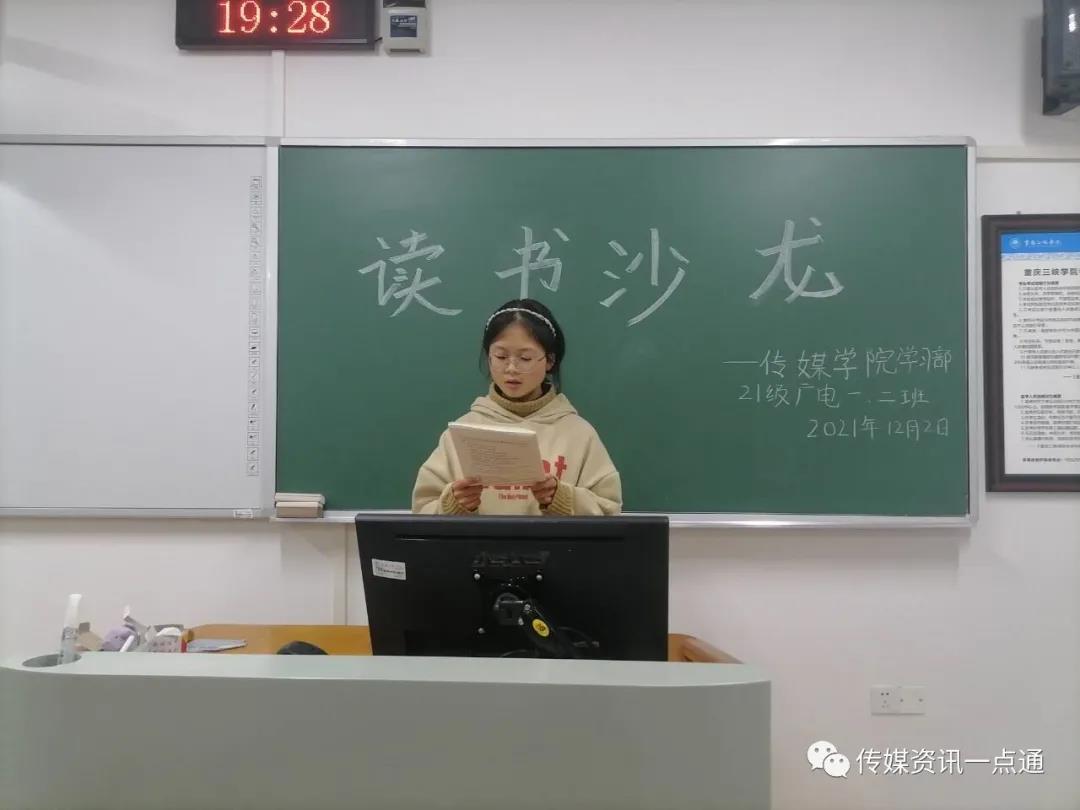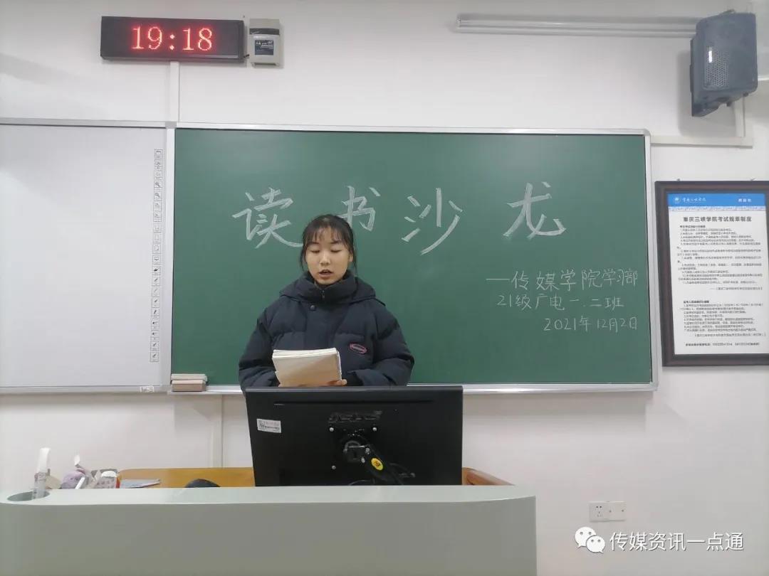 此次读书沙龙分享大会中,2021级广播电视学1班和2班同学们积极参与,踊跃的分享自己读的书。分享《活着》这本书时,分享者先向大家介绍了作者余华创作这本书时的背景,以此来帮助大家更好的理解这本书。分享《平凡的世界》时,分享者则主要介绍了书中田晓霞这个角色所带给她的感受与启发。还有的同学分享了《人间滋味》这本书,书中汪曾祺用朴素的言语对各种美食进行了描写,表达了作者对生活的热爱之情。在台上的同学分享书籍时,台下的同学们都认真的聆听并记下自己感兴趣的书名。同学们广泛的阅读,精彩的分享使本次读书沙龙活动亮点不断。