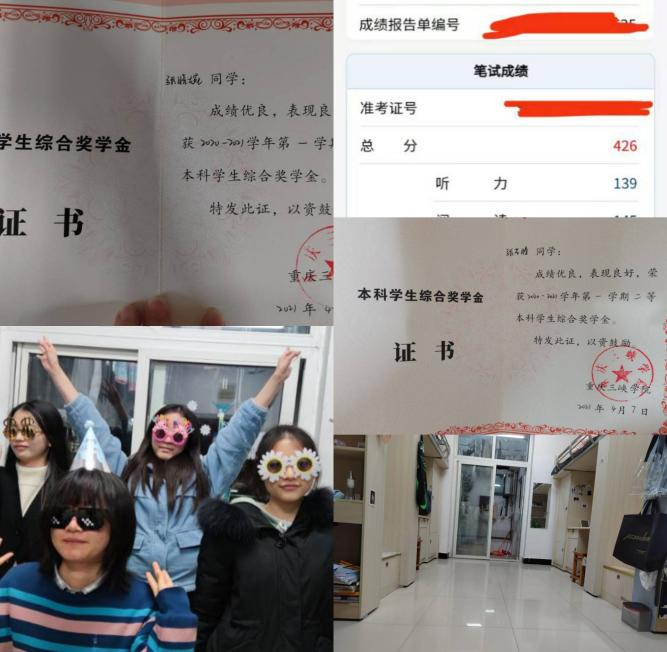 (二)四人中有三人分别荣获校级一等、二等、三等奖学金。