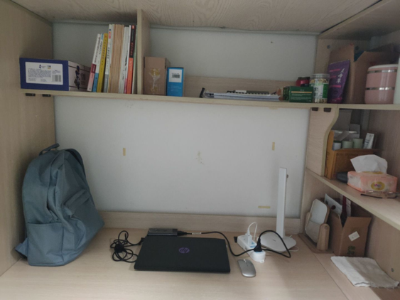 首先是桂花园一舍405寝室,每个同学的书桌都打理得井井有条。在寝室里她们互帮互助,全寝在学习和生活中都取得长足进步。