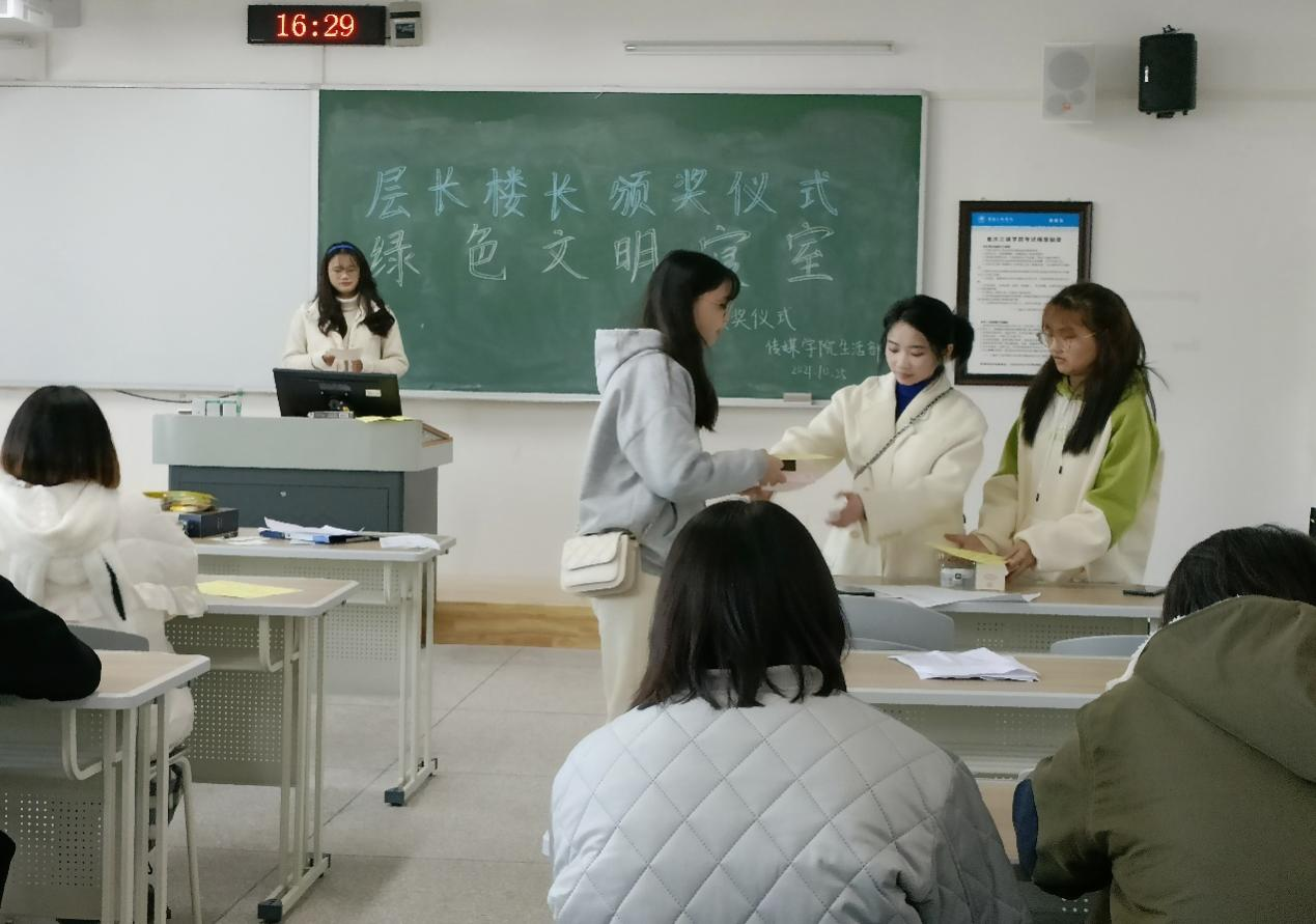 2021年11月25日,在重庆三峡学院博学楼1-205顺利举行了传媒院文明层长楼长颁奖活动,各位获奖层长楼长悉数到场。为了加强重庆三峡学院寝室卫生清洁建设,打造文明型寝室、友好型寝室、学习型寝室,推动校园精神文明建设,构建和谐校园,重庆三峡学院传媒院生活部举办了文明层长楼长颁奖活动,但由于疫情原因,这次活动采取了线上直播和线下代表领奖的方式。
