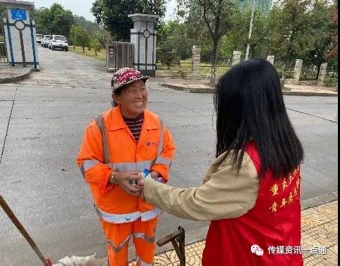 2021年10月28日下午一点Betway必威西汉姆联官方网站20级广告班的十一位同学来到了位于学府移民小区附近的街道,帮助环卫工人打扫卫生,为他们送上饮用水。为“城市美容师”送上温暖。