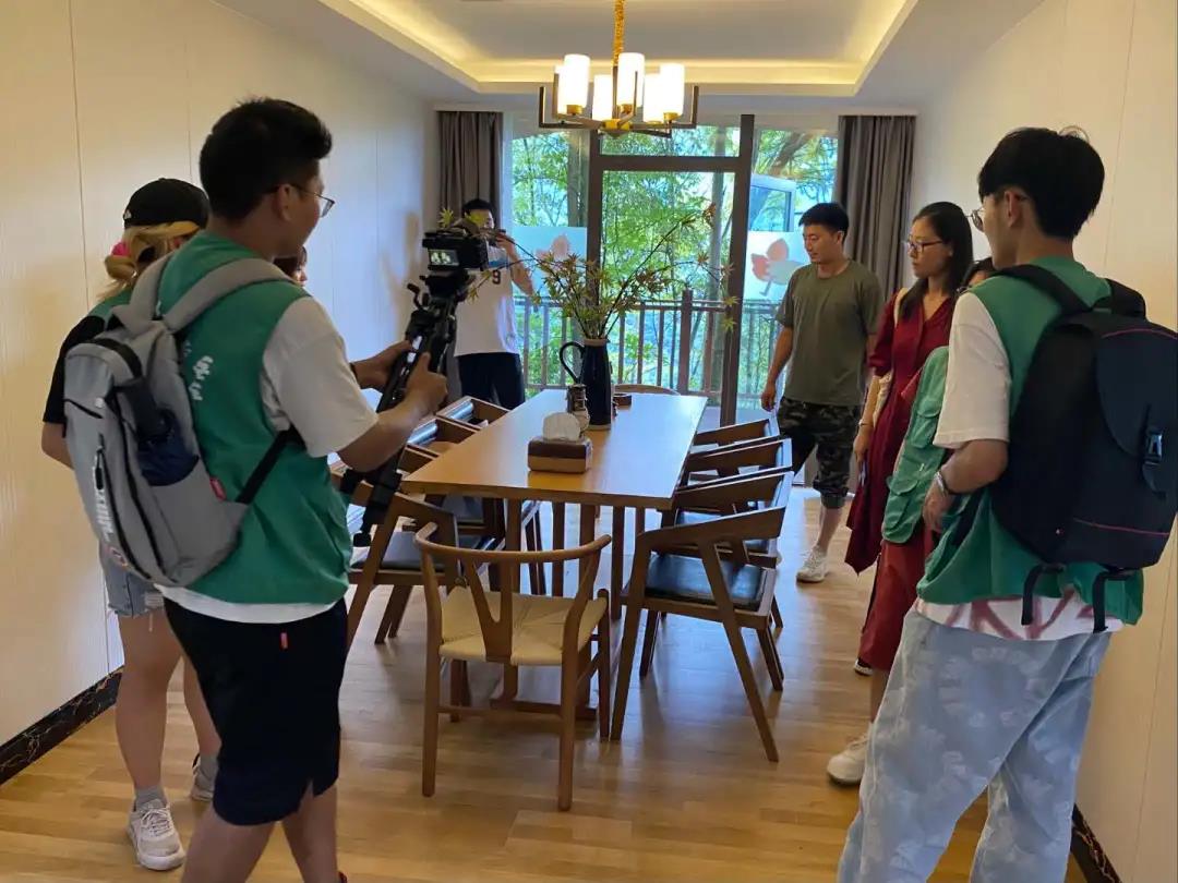 拍摄前期,为了更好的完成宣传片的拍摄,行远振兴三下乡团队的成员们与枫木村书记黄小华进行了初步沟通,了解到枫木村以优美的自然风光闻名。因此,在乡村振兴政策的指引下,利用该地特色,枫木村建设了别具风格的特色民宿,推动当地旅游业发展。随后,黄书记带领着团队成员们对该地进行了熟悉,带领我们了解了当地标志性景点,如:土家天境、枫香记系列民宿等等。团队成员们最终集思广益,对枫木村的特色民宿与景点进行了全貌拍摄,为宣传片的拍摄提供了充足的素材与更加新颖的思路。团队成员们均期望宣传片的完成与推广能够为当地旅游业的发展贡献力量,并最终助力恒合土家族乡的乡村振兴。