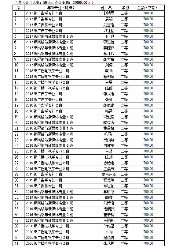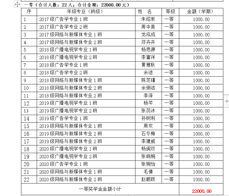 3月10日在Betway必威西汉姆联官方网站辅导员办公室,2020-2021学年度第一学期奖学金评定顺利结束。本着公开、公平、公正的原则,经各班认真评比,学工办审核评定,我院严格审查决定,全学院共有937名学生参与了评比,占全系总人数939的99%,共有163名学生获奖。其中,朱绍岽等22人获得一等奖学金,赵诗雨等50人获得二等奖学金,王妍等91人获得三等奖学金。祝贺以下同学获得2020-2021学年度第一学期奖学金!