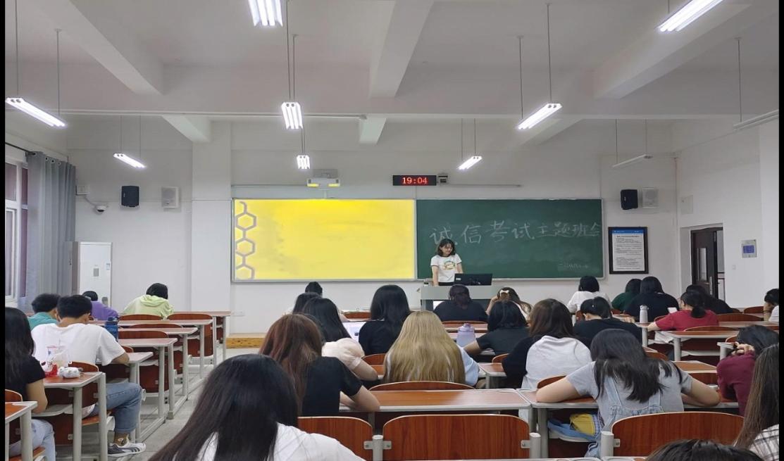 班会中,各班班委向同学们仔细解答了关于考前可能会遇到的一些情况,并通过一些典型案例和《大学生手册》中关于考试作弊行为的认定和处理办法,告诫同学们诚信考试,认清作弊行为的严重后果。